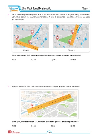 2. Harita üzerinde gösterilen parkın 3 ile B noktaları arasındaki kenarının gerçek uzaklığı 120 metredir.