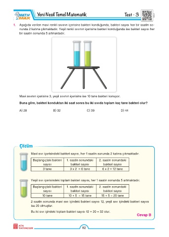 Bu iki sıvı içindeki toplam bakteri sayısı 12 + 20 = 32 olur.