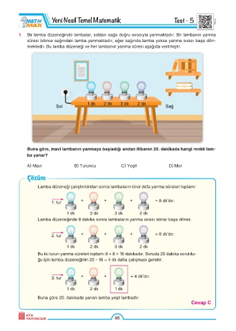 1. Bir lamba düzeneğinde lambalar, soldan sağa doğru sırasıyla yanmaktadır. Bir lambanın yanma