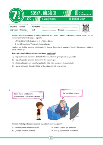 Page 100 - ATA YAYINCILIK 7.Sinif 27 Deneme Sosyal Bilgiler