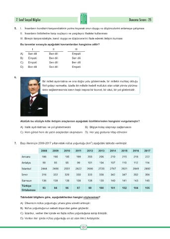 7. Sınıf Sosyal Bilgiler Deneme Sınavı - 25