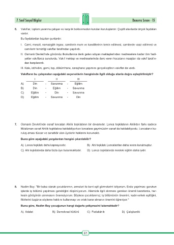 7. Sınıf Sosyal Bilgiler Deneme Sınavı - 15