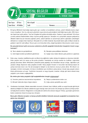 Page 64 - ATA YAYINCILIK 7.Sinif 27 Deneme Sosyal Bilgiler
