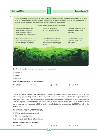 7. Sınıf Sosyal Bilgiler Deneme Sınavı - 16