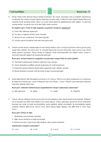 7. Sınıf Sosyal Bilgiler Deneme Sınavı - 17