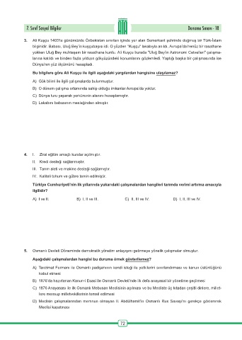 7. Sınıf Sosyal Bilgiler Deneme Sınavı - 18