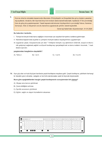 7. Sınıf Sosyal Bilgiler Deneme Sınavı - 18