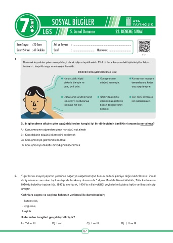 Page 88 - ATA YAYINCILIK 7.Sinif 27 Deneme Sosyal Bilgiler