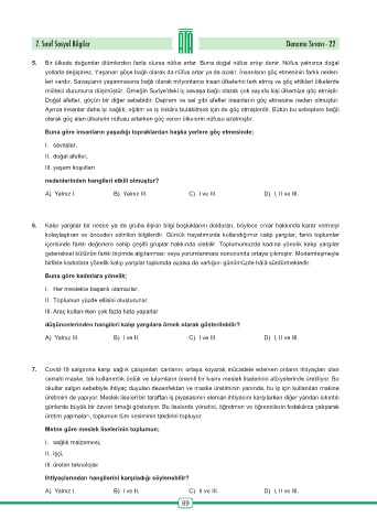 7. Sınıf Sosyal Bilgiler Deneme Sınavı - 22