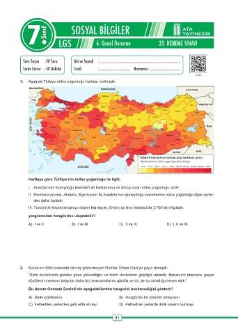 Page 92 - ATA YAYINCILIK 7.Sinif 27 Deneme Sosyal Bilgiler
