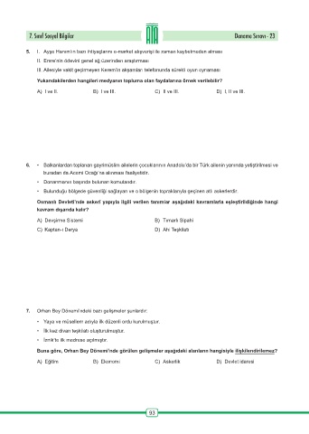 7. Sınıf Sosyal Bilgiler Deneme Sınavı - 23