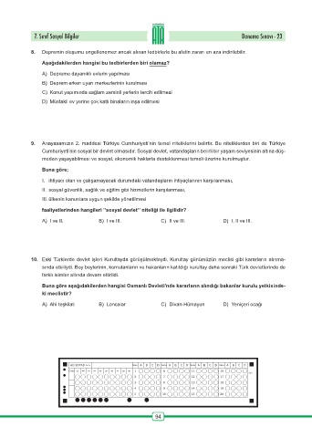 7. Sınıf Sosyal Bilgiler Deneme Sınavı - 23