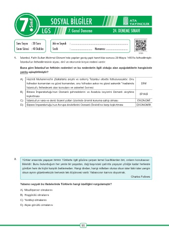 Page 96 - ATA YAYINCILIK 7.Sinif 27 Deneme Sosyal Bilgiler