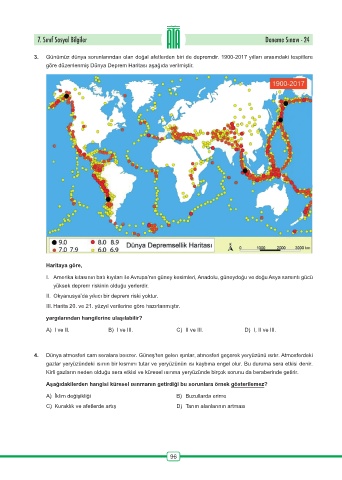 3. Günümüz dünya sorunlarından olan doğal afetlerden biri de depremdir. 1900-2017 yılları arasındaki tespitlere