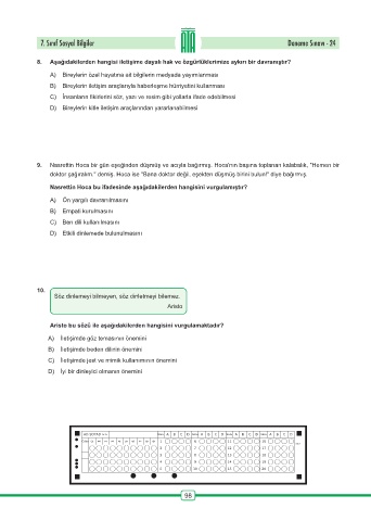7. Sınıf Sosyal Bilgiler Deneme Sınavı - 24