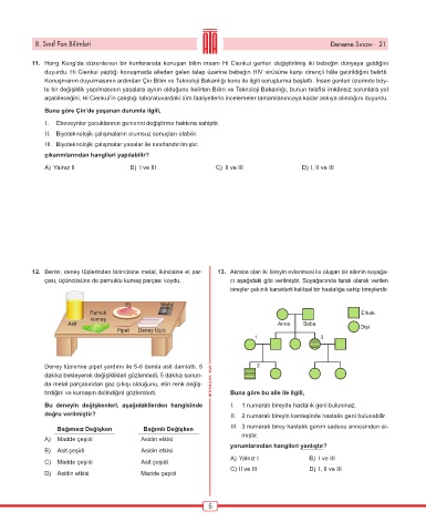 8. Sınıf Fen Bilimleri Deneme Sınavı - 21