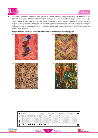 AD SOYAD >> Soru A B C D Soru A B C D Soru A B C D Soru A B C D