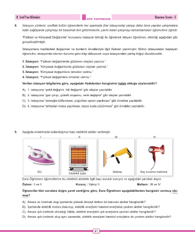 8. Sınıf Fen Bilimleri Deneme Sınavı - 5