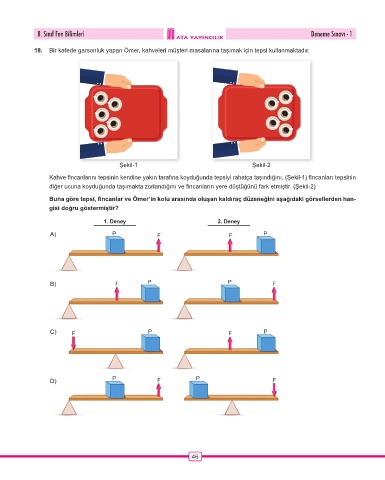 18. Bir kafede garsonluk yapan Ömer, kahveleri müşteri masalarına taşımak için tepsi kullanmaktadır.