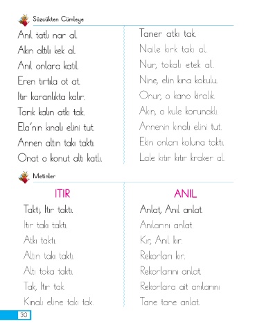 Taktı, Itır taktı. Anl at, Anıl anl at.