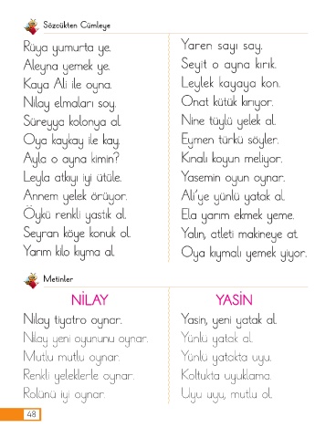 Öykü renkli yastık al. El a yarım ekmek yeme.