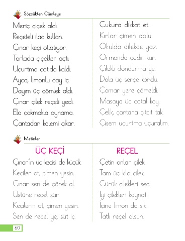 Çı Çınar keçi otlatıyor. Okulda dilekçe yaz.
