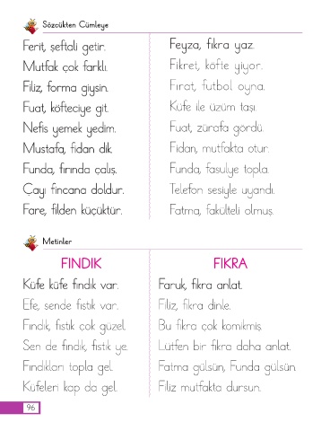 Fe Ferit, şeftali getir. F eyz a, fıkr a yaz.