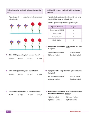 7. Görseldeki çiçeklerin yüzde kaçı papatyadır? C) Kızılay Kulübü D) Müzik Kulübü