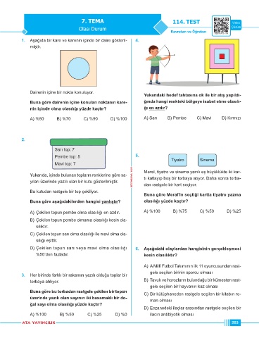 Buna göre dairenin içine konulan noktanın kare- ğında hangi renkteki bölgeye isabet etme olasılı-
