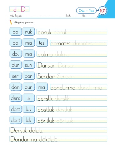 Adı, Soyadı: ........................................................................................................... Sınıfı: ........................ No.: ........................
