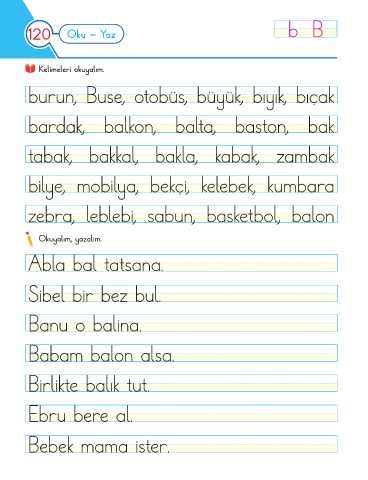 burun, Buse, otobüs, büyük, bıyık, bıçak