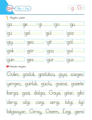 124 Adı, Soyadı: ........................................................................................................... Sınıfı: ........................ g G