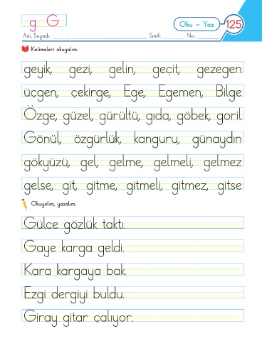 Öz ge, güz el, gürül tü, gıda, göbek, goril