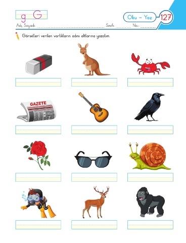 Görselleri verilen varlıkların adını altlarına yazalım.