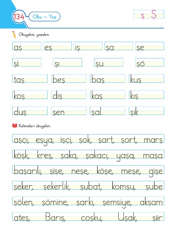 aşçı, eşya, işçi, şok, şart, şort, marş