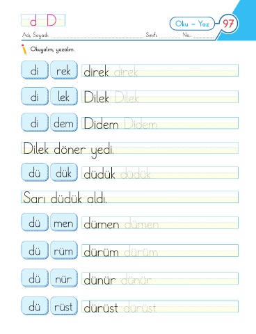 Adı, Soyadı: ........................................................................................................... Sınıfı: ........................ No.: ........................