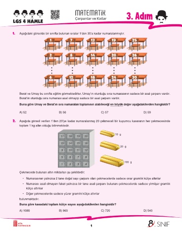 Berat’ın oturduğu sıra numarası asal olmayıp sadece bir asal çarpanı vardır.