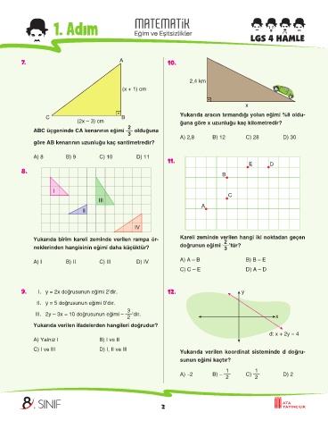 9. I. y = 2x doğrusunun eğimi 2’dir. 12. y