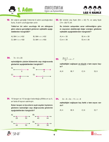 19. Bir odanın genişliği Yekta’nın 8 adım uzunluğundan 22. Bir ürünün alış fiyatı (5m + 42) TL ve satış fiyatı