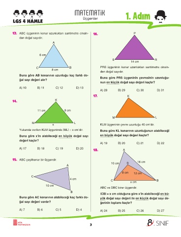 13. ABC üçgeninin kenar uzunlukları santimetre cinsin- 16. P