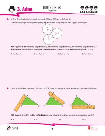 3. A, B ve C merkezli dairelerin alanları sırasıyla 300 cm , 363 cm ve 243 cm dir.