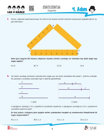 2. Her birinin uzunluğu santimetre cinsinden birer doğal sayı olan farklı uzunluktaki dört çubuk 1. Şekil’de verilmiştir.