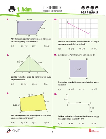 8. A 11. Şekilde verilen ABCD karesinin alanı 72 cm dir.