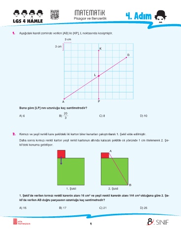 1. Aşağıdaki kareli zeminde verilen [AB] ile [KP], L noktasında kesişmiştir.