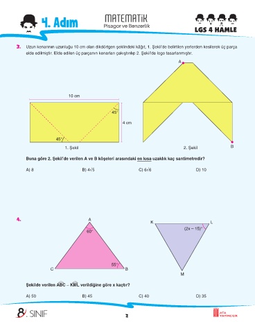 Buna göre 2. Şekil’de verilen A ve B köşeleri arasındaki en kısa uzaklık kaç santimetredir?