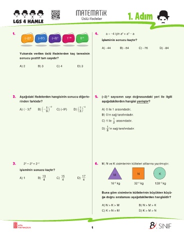 LGS 4 HAMLE LGS 4 HAMLE ATA-4HM-005 Üslü ifadeler