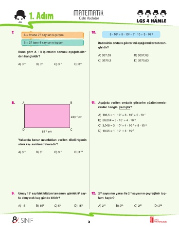 8. A B 11. Aşağıda verilen ondalık gösterim çözümlemele-