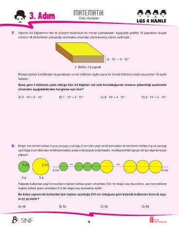 7. Alperen A4 kâğıtlarının her iki yüzeyini kullanarak bir roman yazmaktadır. Aşağıdaki şekilde 16 yapraktan oluşan