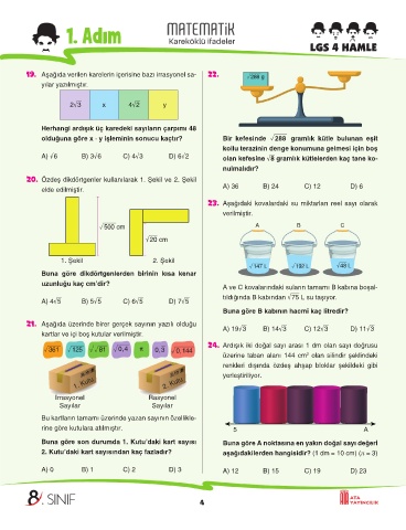 19. Aşağıda verilen karelerin içerisine bazı irrasyonel sa- 22. 288 g