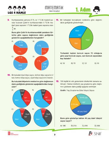 9. Kumbarasında yalnızca 5 TL ve 1 TL’lik madenî pa- 11. Bir torbadaki boncukların renklerine göre dağılımı